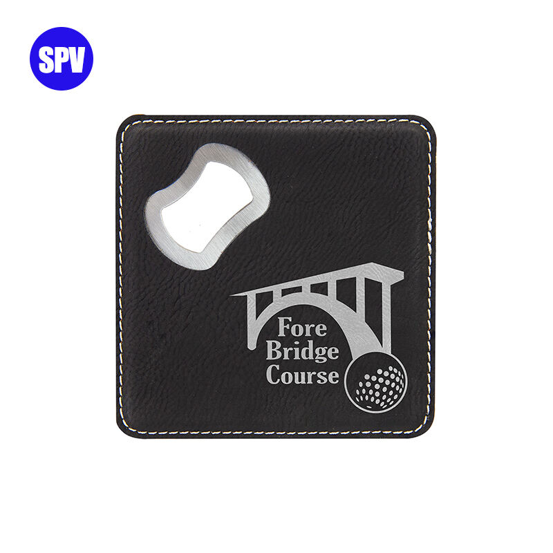 | Square Laserable Leatherette Bottle Opener Coaster |