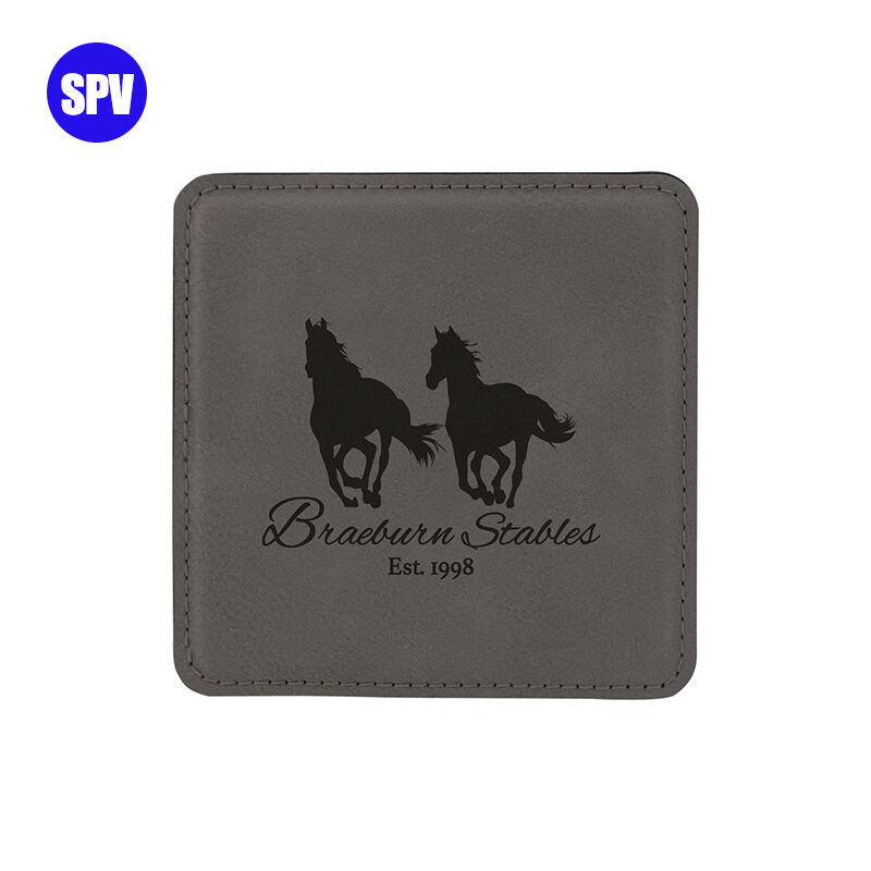 | Square Laserable Leatherette 6-Coaster Sets with Holder deliver organized, customizable protection. Crafted from durable synthetic leather, each coaster accepts crisp, permanent laser engraving for monograms, logos, or designs. The included holder neatly stores all 6 coasters, keeping them tidy and ready for use. Features excellent heat resistance, water-resistance, and non-slip bases. Ideal for home bars, cafes, offices, or as sophisticated gifts. Order this complete square coaster set to elevate your drink service with durable, engraved elegance and the convenience of integrated storage. Protect surfaces stylishly with easy-to-engrave leatherette and a practical holder. | |